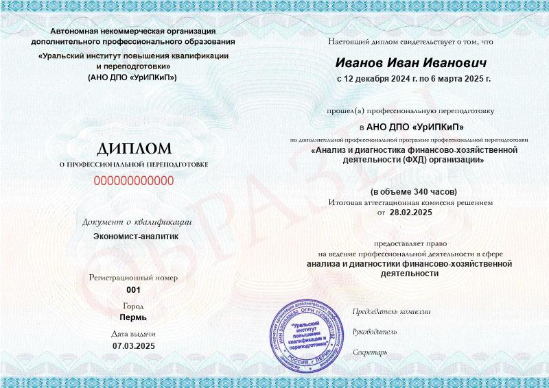 Курс обучения Анализ и диагностика финансово-хозяйственной деятельности (ФХД) организации (340ч)