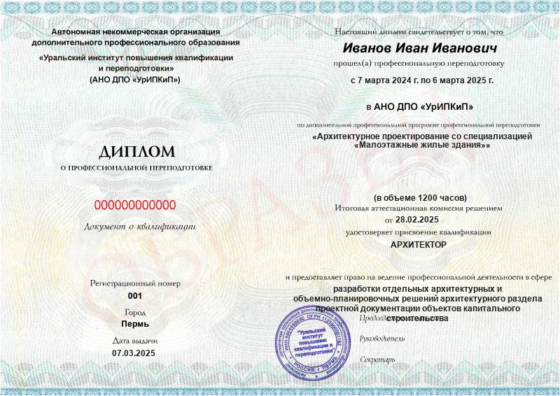 - Получаете диплом с квалификацией архитектора малоэтажных зданий!