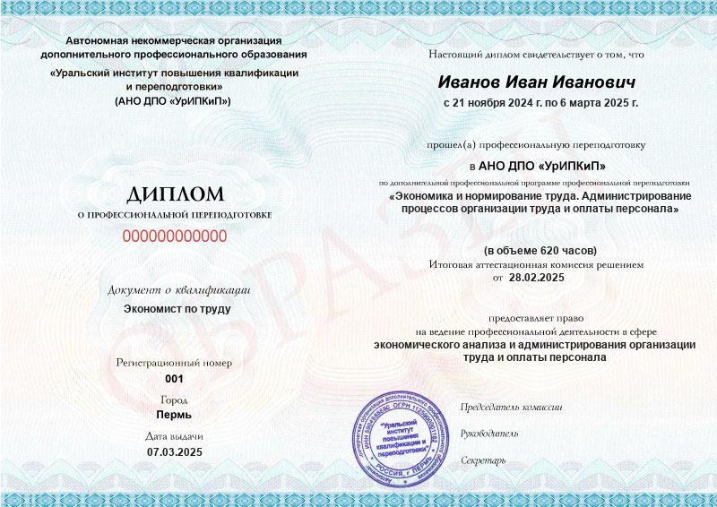 Курс обучения Экономика и нормирование труда. Администрирование процессов организации труда и оплаты персонала (620ч)