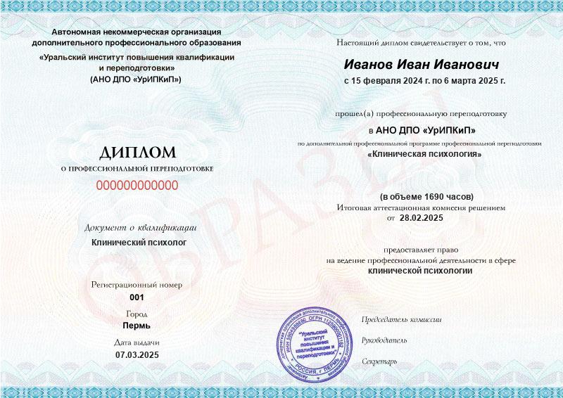 • Диплом института с государственной лицензией.