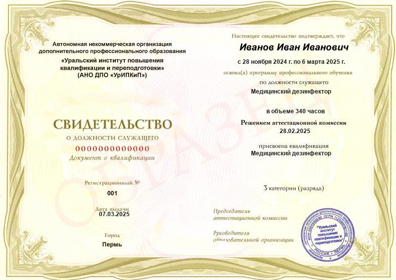 Заполненные образцы выдаваемых документов есть в описании учебных курсов и на странице «Лицензия. Документы», а также на главной странице официального сайта АНО ДПО «УрИПКиП».