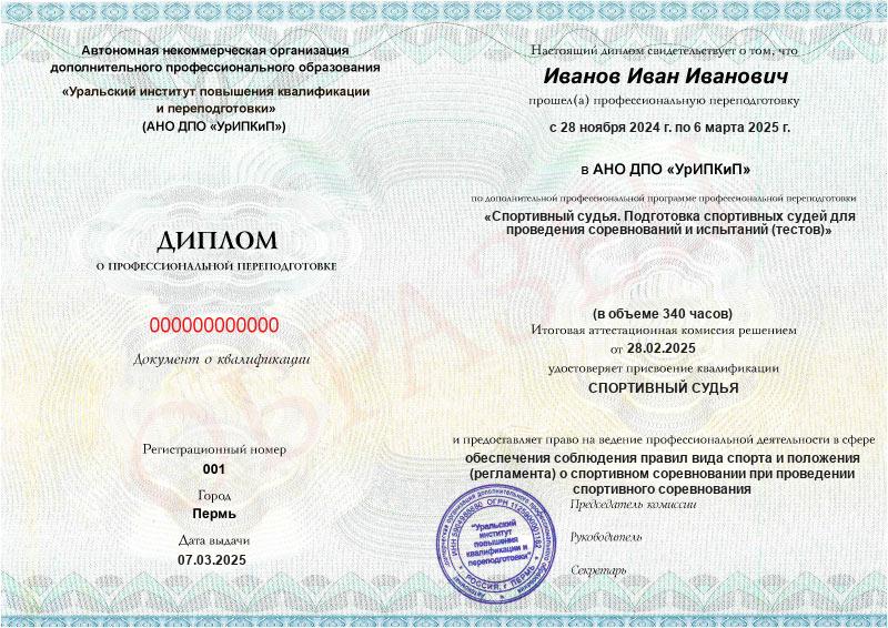 - Образец диплома о профессиональной переподготовке.