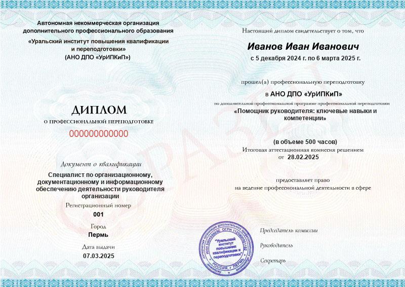 Курс обучения Помощник руководителя: ключевые навыки и компетенции (500ч)