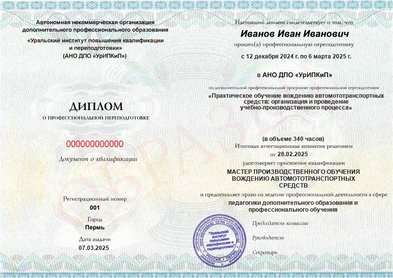 - Образец диплома о профессиональной переподготовке.