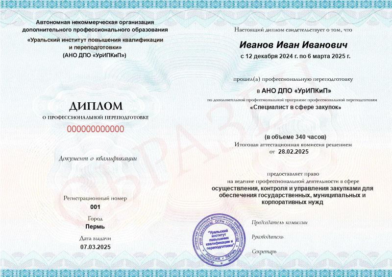 Да, дипломы и удостоверения оформляются в соответствии с действующим законодательством РФ. Документы печатаются на специальных бланках, заверяются печатью АНО ДПО «УрИПКиП».