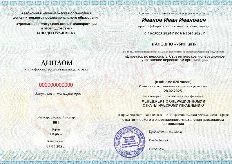 Курс обучения Директор по персоналу. Стратегическое и операционное управление персоналом организации (620ч)