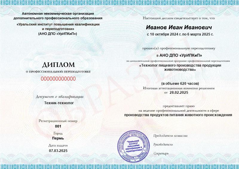 - Образец диплома о профессиональной переподготовке.