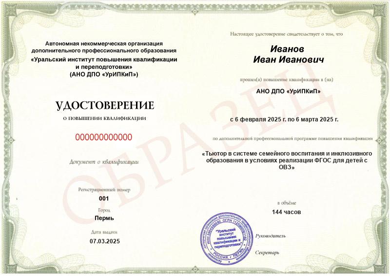 • Повышали квалификацию в АНО ДПО «УрИПКиП» – вам будет выдано удостоверение.