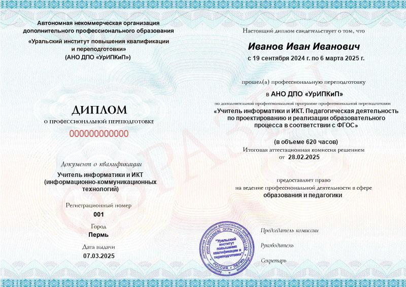 • Вы получаете диплом, подтверждающий достаточность ваших компетенций для работы учителем информатики и ИКТ;