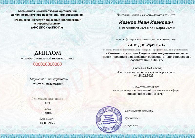 Курс обучения Учитель математики. Педагогическая деятельность по проектированию и реализации образовательного процесса в соответствии с ФГОС (620ч)
